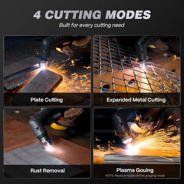 2. 4-IN-1 CUTTING MODES: Supports plate cutting, expanded-metal cutting, rust/paint removal, and plasma gouging . Strong cutting performance: maximum cutting up to 1-1/16""(220V) /5/8" maximum severance cut(110V)