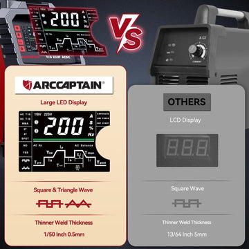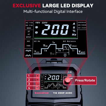 ARCCAPTAIN TIG Welder AC/DC 200Amp with Pulse is a high-performance TIG welder that integrates pulse welding, AC/DC welding, and MMA welding, making it suitable for various industrial and commercial applications. With its versatile functions, advanced inverter technology, industrial-grade welding quality, portability, strong market demand, and durability, TIG200PACDC is an excellent choice for welding machine distributors, tool retailers, contractors, traders, purchasers, farms, and small workshops.