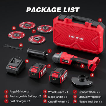 ARCCAPTAIN Angle Grinder Kit 4-1/2 to 5" 9500RPM 1200W Brushless Power Motor Cordless for Cutting/Grinding/Polishing