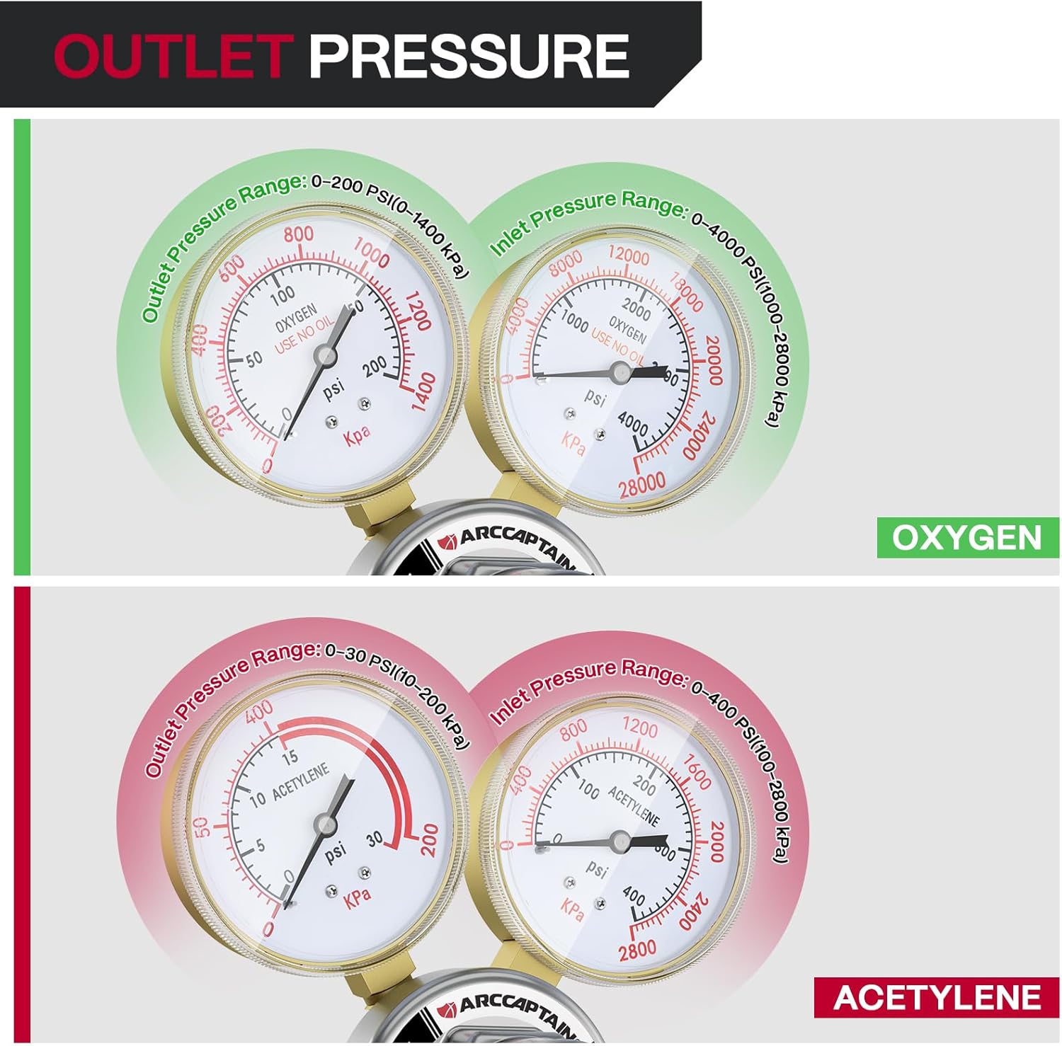 Oxygen and Acetylene Gas Regulators CGA540 and CGA510 Welding Gas Gauges