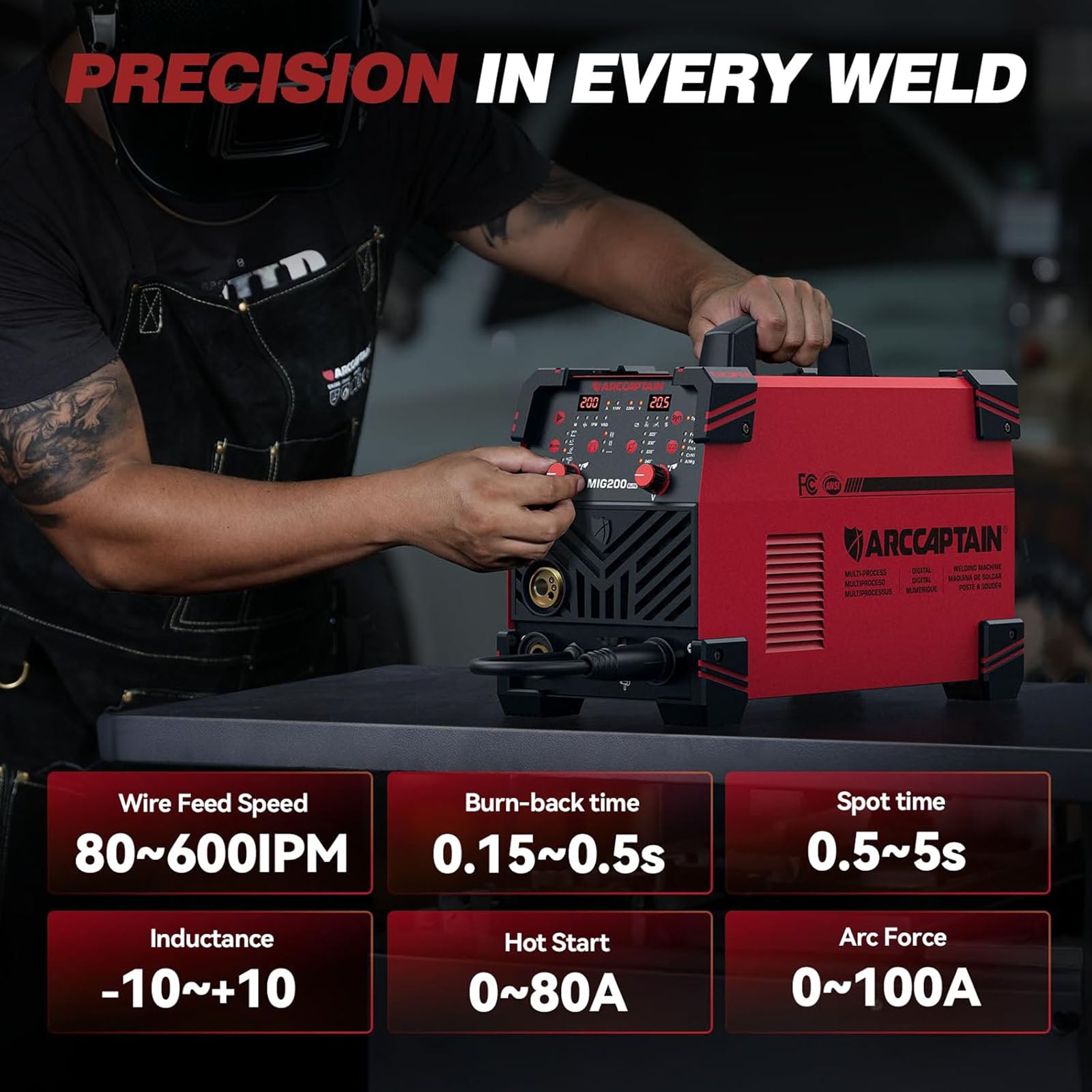 6-IN-1 WELDER: ARCCAPTAIN 200Amps welding machine that included Gas MIG/ Gasless MIG/ Lift TIG/ MMA/ Spot/ Spool Gun meet your different requirements (Need to buy extra Lift tig torch and spool gun). Suitable for welding mild Steel, carbon steel, stainless steel and aluminum
