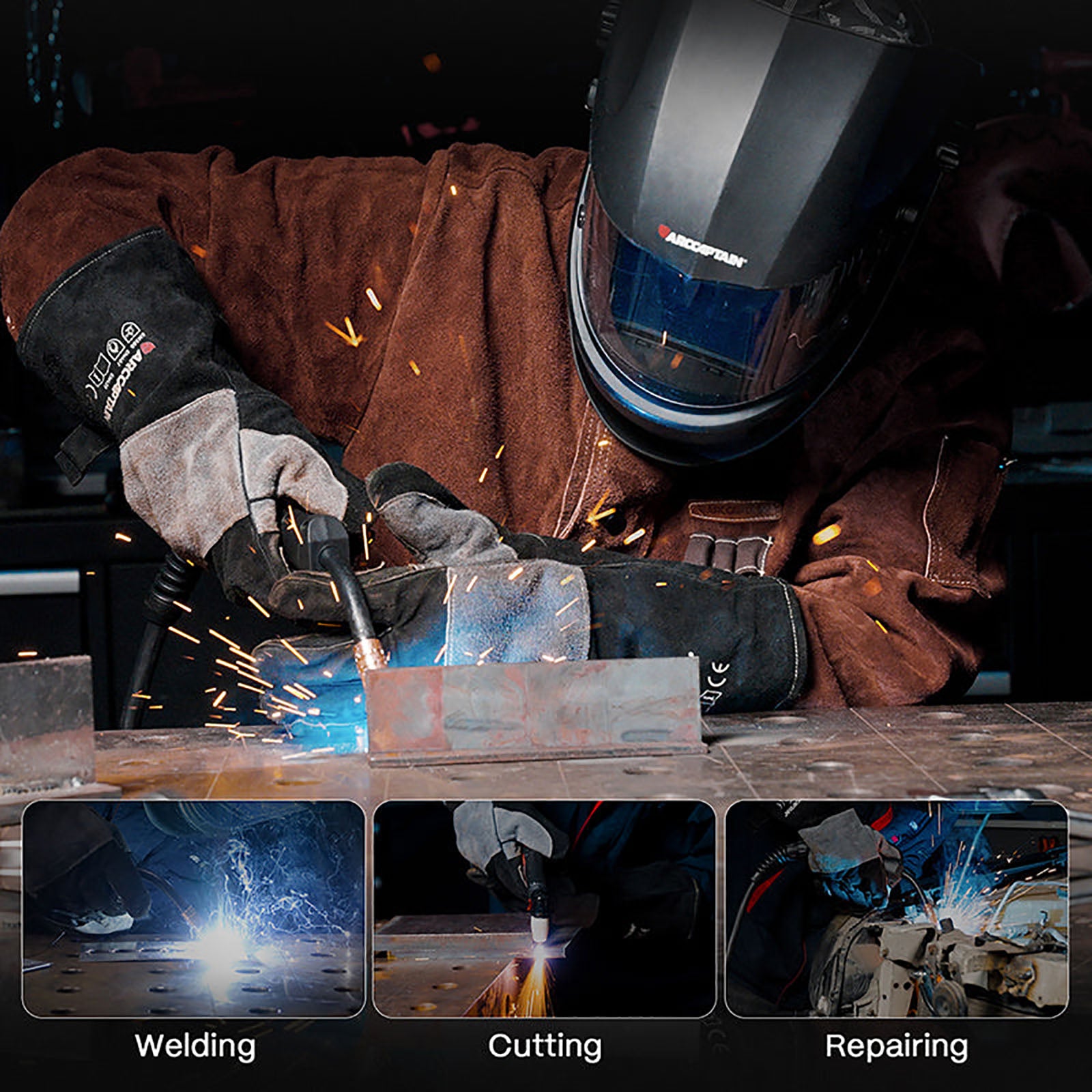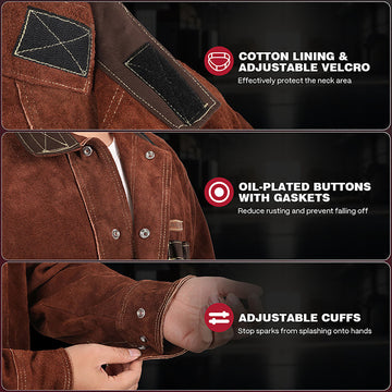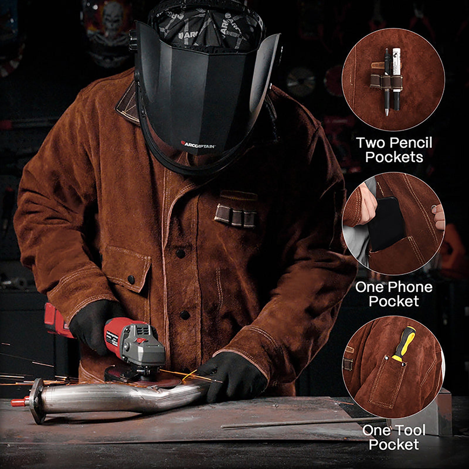 Heavy Duty Cowhide Welding Jacket Brown Leather Coat